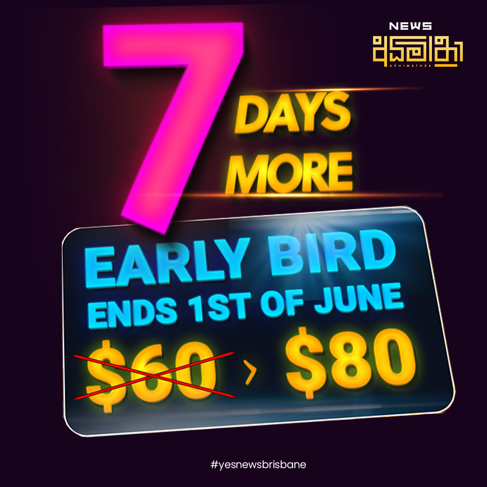 A neon sign announcing an increase in early bird special from $60 to $80, with a countdown of 7 days remaining and Twitter hashtag #yesnewsbrisbane.